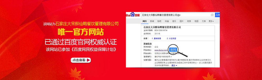 Copyright © 石家莊大宋醉仙鴨餐飲管理有限公司 All Rights Reserved.  技術(shù)支持:河北供求網(wǎng) 河北名企網(wǎng)榮譽(yù)企業(yè)-河北企業(yè)名錄已收錄